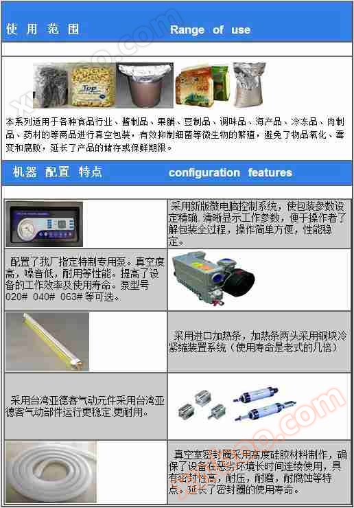Применимые отрасли (например: большая упаковка пищевого сырья, финики, грецкие орехи, сосны, электроника, продукты водорослей антиоксиданты и другие порошки, гранулы, соус большие предметы вакуумной упаковки). Модель, объем вакуумной камеры большой, устье мешка вертикальная форма уплотнения. Может быть вместе с внешней упаковкой продукта (например: бочки, коробки). Отложить непосредственно в вакуумном помещении, потому что упаковка является вертикальным уплотнением на упаковке для мобильных предметов в мешке нелегко извлечь из отверстия мешка, чтобы убедиться, что товар не потерян, завершить вакуумное уплотнение внутреннего мешка, также обеспечить качество уплотнения, открытую форму работы, легко отложить тяжелые грузы;