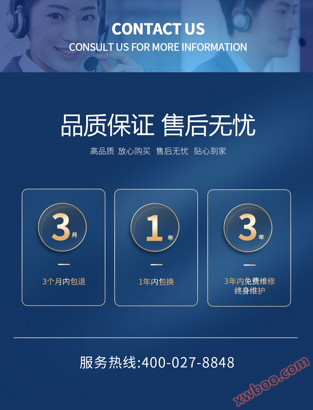 Наше обязательство по послепродажному обслуживанию: « В течение 3 месяцев гарантируется замена в течение 1 года, 3 года бесплатного обслуживания в течение всей жизни». В ближайшие дни, как всегда, мы будем придерживаться трех звездных уровней!