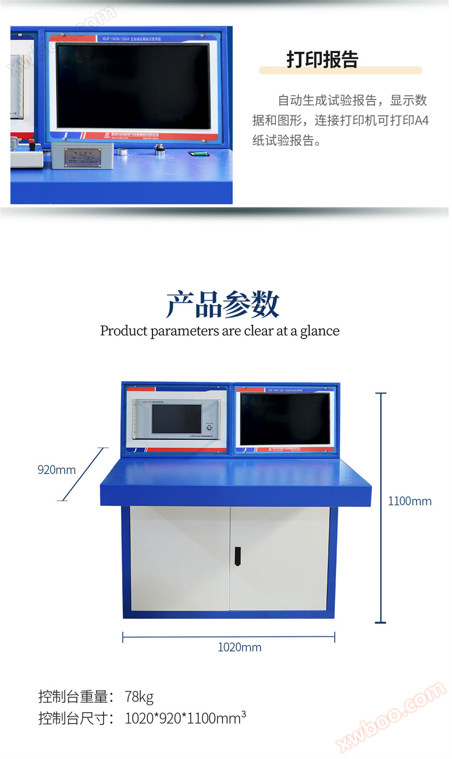 Система испытаний на локальный разряд HZJF - 124 - 50kVA / 150kV полностью автоматически применяется на заводах по производству силовых трансформаторов систем подачи и распределения, промышленных и горнодобывающих предприятиях, научно - исследовательских отделах и т. Д. Испытания на прочность изоляции при высоковольтных электрических устройствах, электрических элементах, изоляционных материалах и т. Д. Важным оборудованием при испытаниях на высоковольтное давление. Интеллектуальное соединение прибора для испытаний на неорганизованный сброс (блок управления трансформатором) и детектора локального разряда в один прекрасный и легкий внешний вид делает процесс испытаний более удобным и простым.